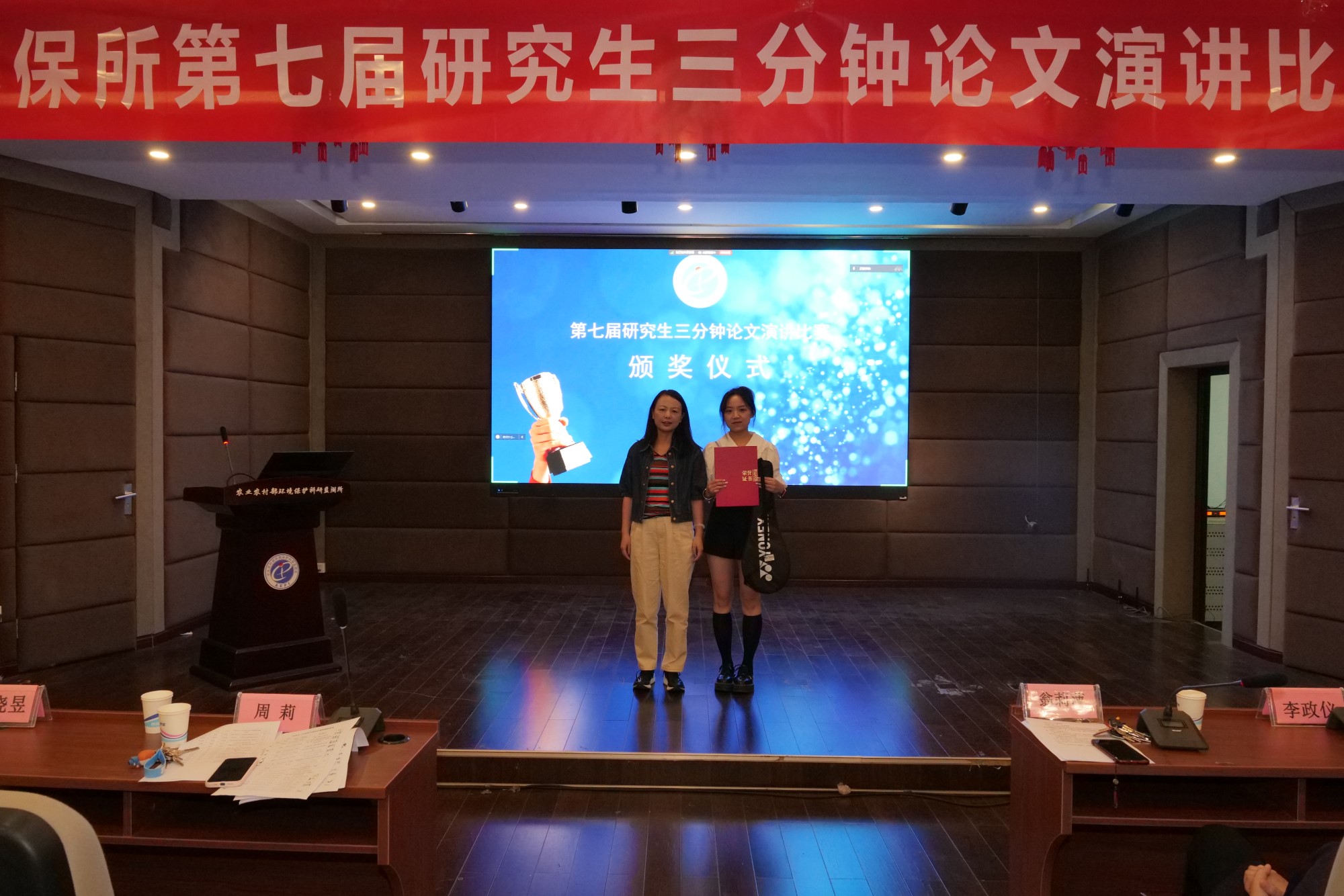 60余位选手围绕自选课题依次自我演讲展示。评委组从演讲者的选题意义、思维逻辑、语言表达以及个人综合素质等多个维度进行全面评价。评选出特等奖1名,一等奖5名,二等奖10名,三等奖15名。此次比赛的特等奖获得者将代表环保所赴中国农业科学院研究生院参加决赛。
