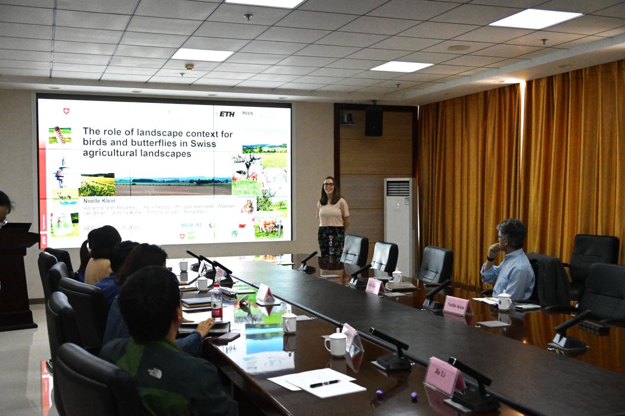 Felix Herzog教授简要介绍了瑞士农业实践、农业景观与农田生物多样性互作关系、农田生物多样性领域跨15个国家21家合作单位的欧洲项目实施等情况,并结合农田边界花草带实例,对可持续生态农业的生物多样性保护措施提出建议。Noëlle Klein博士就景观多样性研究领域实地调查、统计建模和地理信息系统空间分析等研究方法及科研进展与科研人员进行深入交流。